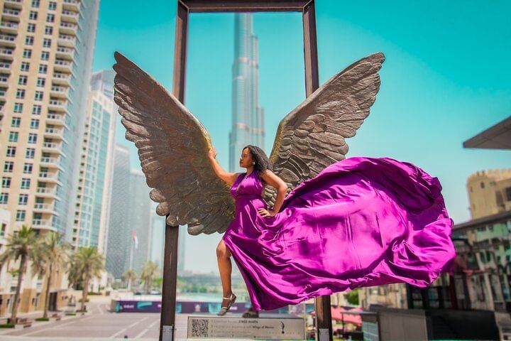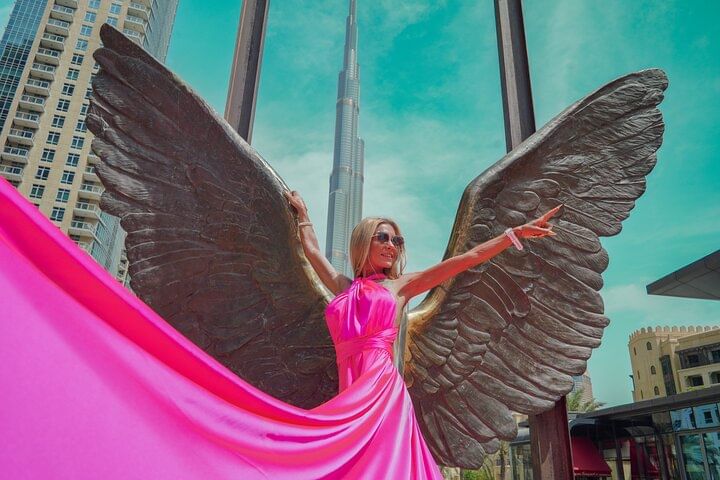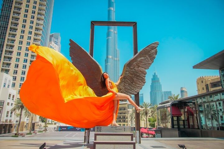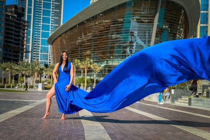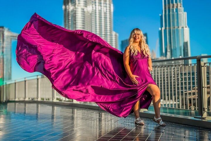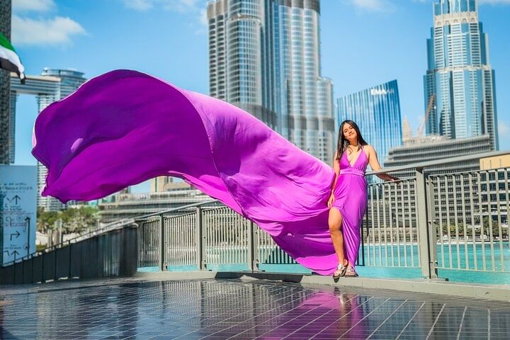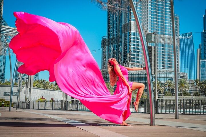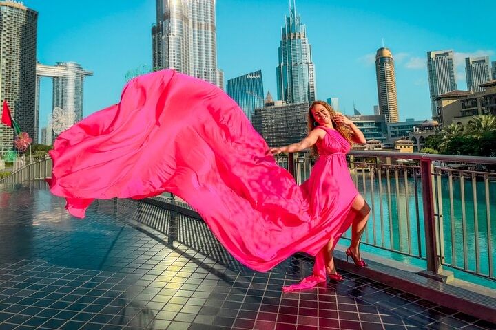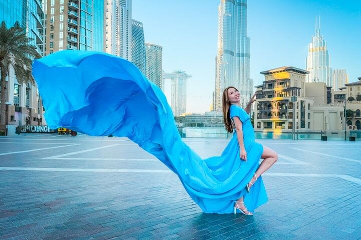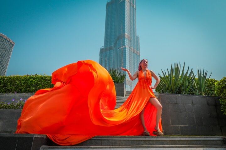 Private Flying Dress Video Shoot with a Professional Travel Videographer around the Burj Khalifa