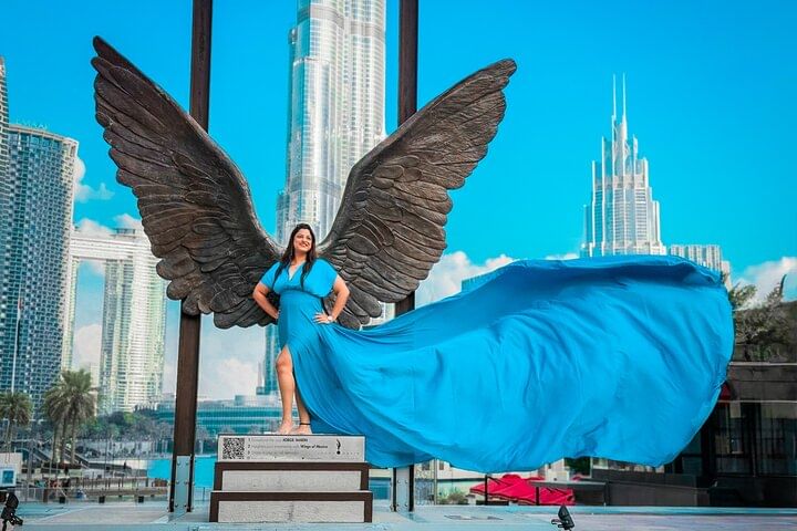 Experience the magic of the Burj Khalifa and Downtown Dubai with our exclusive Flying Dress Videography Tour. In 24 hours, we’ll deliver edited reels that will boost your social media presence.